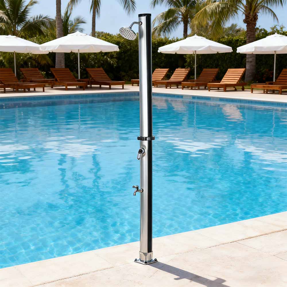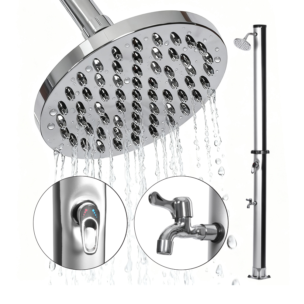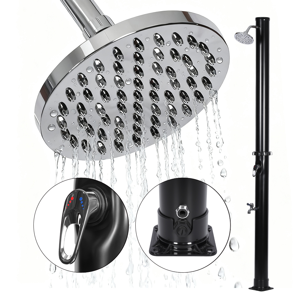 ออกแบบมาเพื่อความสะดวกสบายกลางแจ้ง คอลัมน์ฝักบัวพีวีซีพลังงานแสงอาทิตย์สำหรับสวนกลางแจ้งขนาด 18 ลิตรพร้อมฐาน LY18L01 เหมาะสำหรับสวน พื้นที่ริมสระน้ำ และการตั้งแคมป์ ซึ่งแสดงถึงหนึ่งในนวัตกรรมใหม่ล่าสุดในการทำน้ำร้อนโดยไม่ต้องใช้พลังงานจากภายนอก ช่วยให้ควบคุมอุณหภูมิของน้ำได้ง่ายผ่านเครื่องผสมแบบก้านเดียวที่ผสมน้ำจากท่อฝักบัวแบบอุ่นกับน้ำจากสายยางเย็น เพื่อให้มั่นใจถึงประสบการณ์ที่สะดวกสบาย สร้างด้วยฐาน PVC ที่ทนทานเพื่อความมั่นคงและการรองรับที่เชื่อถือได้ นอกจากนี้ยังมีหัวฝักบัวเรนชาวเวอร์ขนาดใหญ่ที่ปรับมุมได้ 180° ด้วยข้อต่อลูกหมากในตัว ให้ความเย็นสดชื่น การตั้งค่าทำได้รวดเร็วและตรงไปตรงมา ทำให้สะดวกยิ่งขึ้นสำหรับการตั้งค่ากลางแจ้งต่างๆ