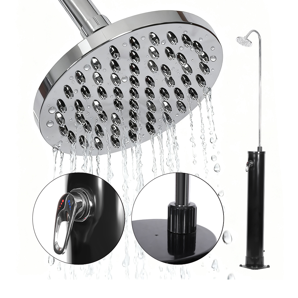 เมื่อสัมผัสกับแสงแดดจ้า น้ำในท่อฝักบัวขนาด 18/20 ลิตรสามารถให้ความร้อนตามธรรมชาติได้สูงถึงประมาณ 60°C โดยไม่ต้องใช้ไฟฟ้า จึงเป็นโซลูชั่นการอาบน้ำที่สะดวกและเป็นมิตรกับสิ่งแวดล้อม เพียงติดสายสวนธรรมดาเพื่อเติมท่ออาบน้ำได้อย่างง่ายดาย ฝักบัวพลังงานแสงอาทิตย์สำหรับสวนกลางแจ้งทรงกลม LY18L01-B ขนาด 18 ลิตร ผลิตจากพลาสติกกันรังสียูวี ออกแบบมาเพื่อความทนทาน และสามารถถอดประกอบและเคลื่อนย้ายได้ง่ายเมื่อจำเป็น ฐานสเตนเลสสตีล PVC ABS ทองแดง และโลหะช่วยให้มั่นใจได้ถึงความเสถียรที่เชื่อถือได้ ทำให้ตัวเครื่องอยู่กับที่อย่างปลอดภัยแม้ในระหว่างการใช้งานบ่อยครั้ง นอกจากนี้ ยังมีขั้วต่อสายยางแบบมาตรฐานเพื่อการเติมน้ำที่รวดเร็วและปลั๊กท่อระบายน้ำที่ช่วยให้สามารถเทท่อฝักบัวออกได้ง่าย ทำให้ง่ายต่อการเตรียมฝักบัวสำหรับการจัดเก็บในฤดูหนาว