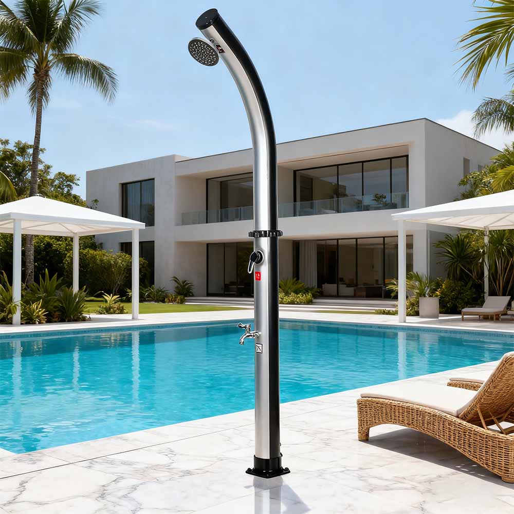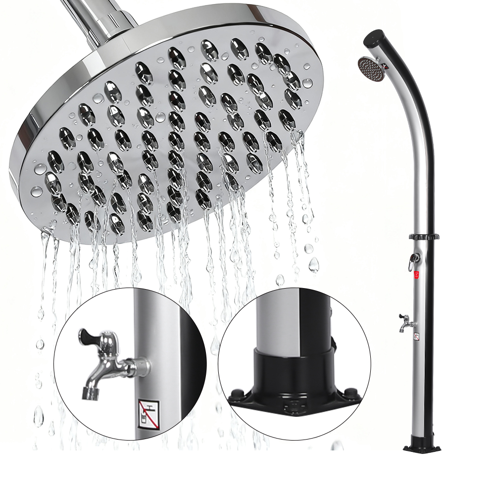 หลังจากเติมท่อฝักบัวด้วยสายยางในสวน น้ำจะอุ่นขึ้นตามธรรมชาติเมื่อโดนแสงแดด และข้อต่อในตัวช่วยให้สามารถปรับอุณหภูมิที่คุณต้องการได้อย่างง่ายดาย ออกแบบมาเพื่อความอเนกประสงค์ ฝักบัวในสระพลังงานแสงอาทิตย์กลางแจ้งแบบโค้งงอได้ขนาด 18 ลิตร LY18L02 พร้อมหัวฝักบัวนี้เหมาะอย่างยิ่งสำหรับการไปเที่ยวริมชายหาด การพักผ่อนริมสระน้ำ หรือการพักผ่อนในชนบท ทำให้เป็นตัวเลือกที่ยอดเยี่ยมสำหรับโรงแรม บ้านพักตากอากาศ และบังกะโลที่จะมอบความสดชื่นสบายตัวทุกที่ นอกจากนี้ ยังมีการเชื่อมต่อท่อที่สะดวกสบายเพื่อการเติมน้ำที่ง่ายดาย และปลั๊กท่อระบายน้ำเพื่อการเททิ้งอย่างรวดเร็ว ช่วยให้มั่นใจได้ถึงการเตรียมการจัดเก็บในฤดูหนาวที่ปลอดภัยและง่ายดาย