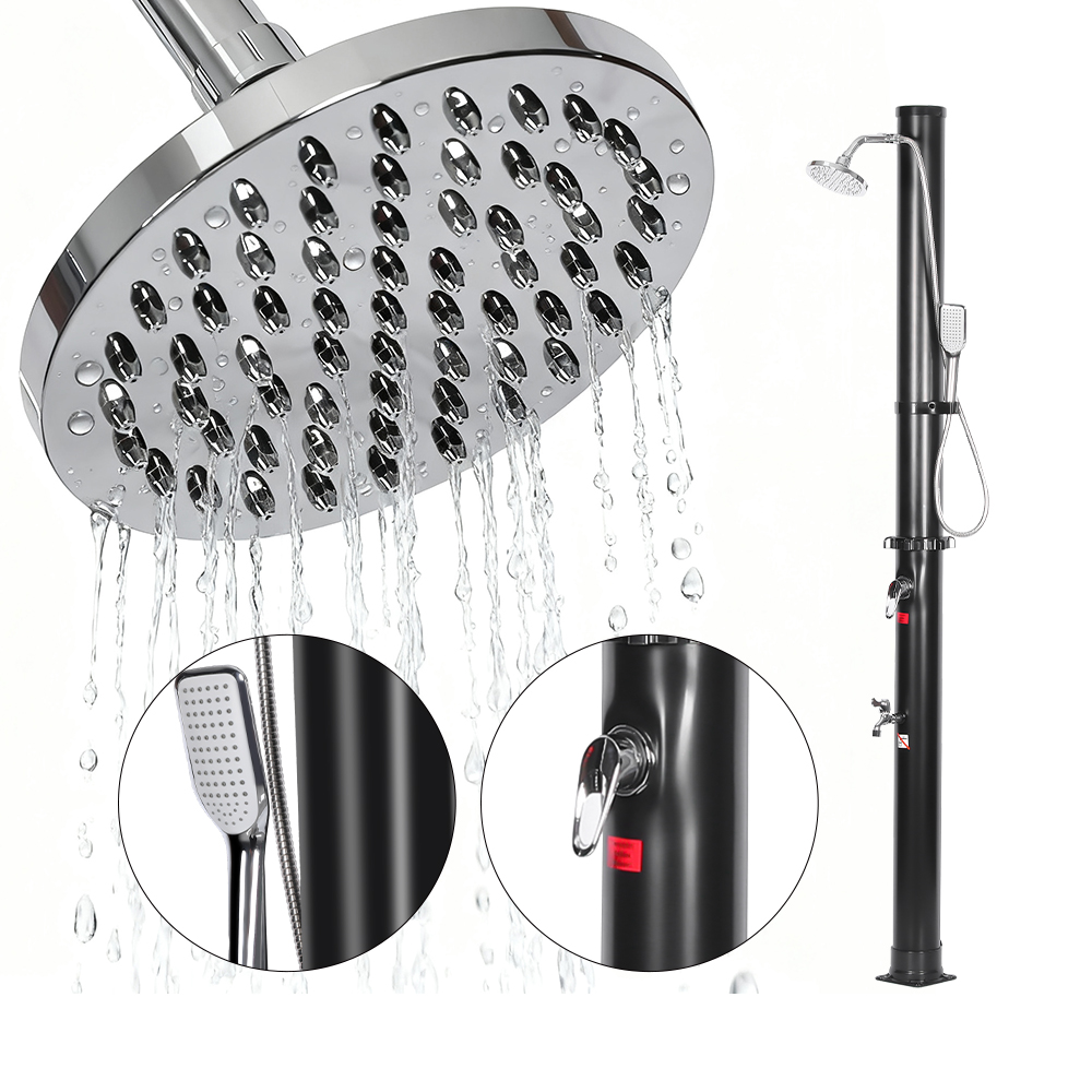 LY18L05-HB 18L หัวฝักบัว ABS โครเมี่ยมสองส่วน ฝักบัวพลังงานแสงอาทิตย์ ฝักบัวในสวนกลางแจ้ง มีการเชื่อมต่อสายยางในสวนที่สะดวกเพื่อการเติมน้ำที่ง่ายดาย และปลั๊กท่อระบายน้ำที่ช่วยให้สามารถเทน้ำออกได้อย่างรวดเร็วเมื่อเตรียมหน่วยสำหรับการจัดเก็บในฤดูหนาว เมื่อเติมท่อฝักบัวแล้ว น้ำร้อนตามธรรมชาติโดยใช้พลังงานแสงอาทิตย์ และก๊อกผสมในตัวช่วยให้ปรับน้ำให้เป็นอุณหภูมิที่คุณต้องการได้อย่างง่ายดายเพื่อประสบการณ์การอาบน้ำที่สะดวกสบาย ส่วนประกอบทั้งหมดได้รับการยึดอย่างแน่นหนาด้วยสกรูเพื่อให้มั่นใจถึงความทนทาน และเพื่อความปลอดภัยในการทำงาน ฝักบัวจะต้องยึดกับพื้นอย่างเหมาะสม มีคำแนะนำที่ชัดเจนในหลายภาษาเพื่อแนะนำคุณตลอดการติดตั้งและใช้งาน ทำให้กระบวนการติดตั้งตรงไปตรงมาและเชื่อถือได้