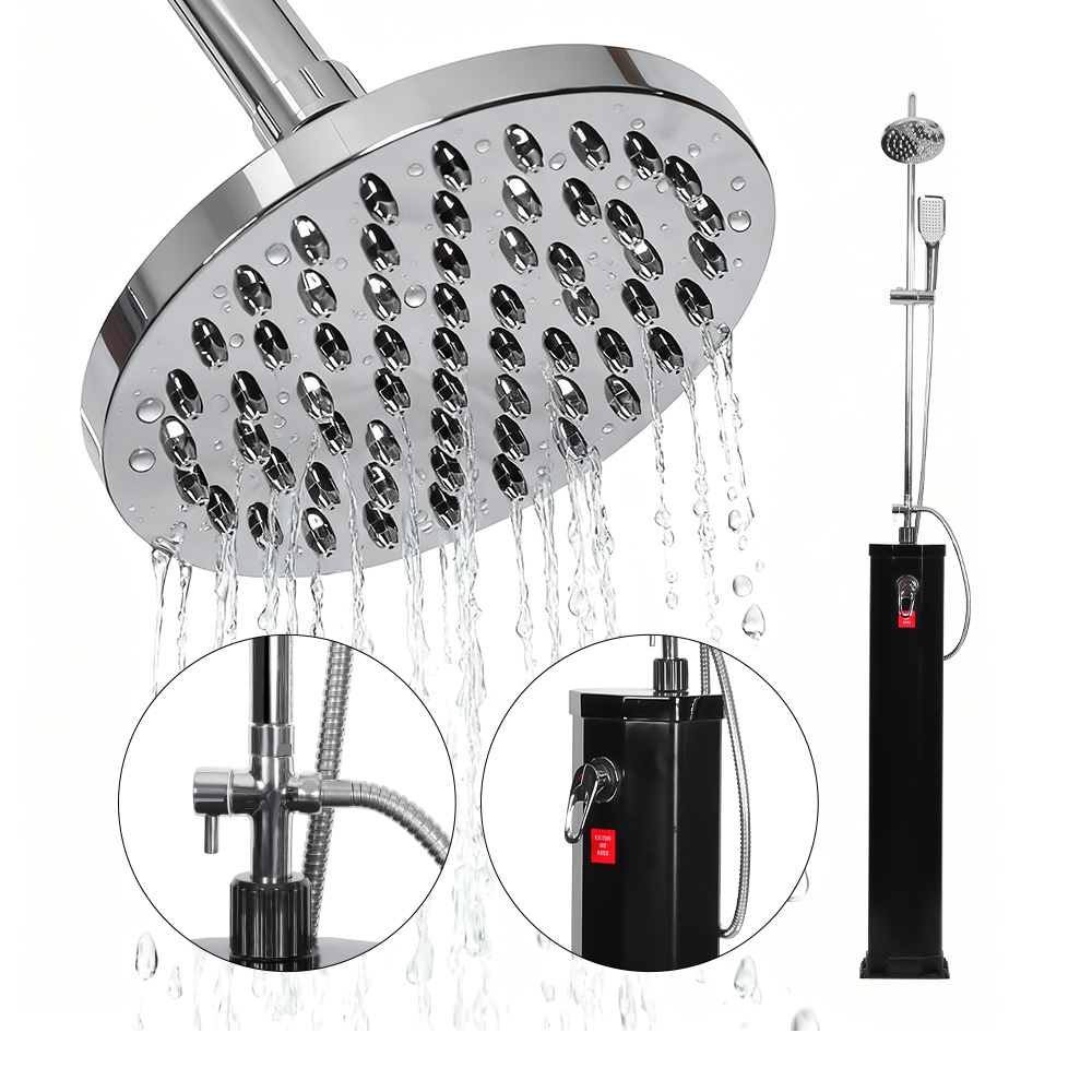 ฝักบัวพลังงานแสงอาทิตย์ PVC ริมสระน้ำ LY18L09-B ขนาด 18 ลิตรพร้อมฝักบัวสายอ่อนสแตนเลสแบบเคลื่อนที่ได้ นี้ออกแบบมาเพื่อมอบความสบายและผ่อนคลายให้กับการใช้งานกลางแจ้งที่หลากหลาย ไม่ว่าจะในสวน ริมสระน้ำ หรือในการตั้งแคมป์ นำเสนอโซลูชั่นที่ทันสมัยสำหรับการเพลิดเพลินกับน้ำร้อนโดยไม่ต้องใช้แหล่งพลังงานภายนอก It features an oversized rain shower head with a built-in ball joint that allows for easy adjustment up to 180°, ensuring flexibility in use and making setup simple. หัวฝักบัวสไตล์ป่าฝนที่ยืดหยุ่นได้ช่วยเพิ่มประสบการณ์โดยให้คุณควบคุมการไหลของน้ำได้อย่างง่ายดาย สร้างความรู้สึกผ่อนคลายเหมือนสปา คล้ายกับการยืนอยู่ใต้น้ำตกธรรมชาติ คุณสมบัติเหล่านี้ร่วมกันมอบประสบการณ์การอาบน้ำที่สดชื่นและปรับแต่งได้ ทำให้เหมาะสำหรับทุกคนที่กำลังมองหาทั้งการใช้งานจริงและการพักผ่อนกลางแจ้ง
