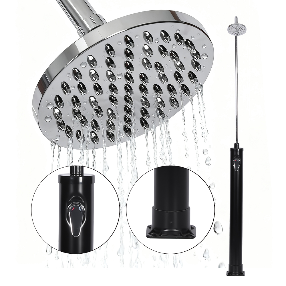 LY08L02 8L สระว่ายน้ำ ฝักบัวพลังงานแสงอาทิตย์กลางแจ้งในสวนนี้เป็นโซลูชั่นที่ดีเยี่ยมสำหรับการใช้งานกลางแจ้ง ไม่ว่าจะในสวน ริมสระน้ำ หรือในการตั้งแคมป์ ใช้พลังงานจากแสงแดดเพียงอย่างเดียว มีท่อฝักบัวขนาด 8 ลิตรที่ให้น้ำร้อนได้สูงถึง 60°C โดยไม่ต้องใช้ไฟฟ้า ระบบได้รับการออกแบบให้ใช้งานง่ายด้วยก๊อกผสมโลหะแบบก้านเดียวที่ผสมน้ำอุ่นจากท่อฝักบัวเข้ากับน้ำเย็นจากสายยางในสวนทำให้สามารถปรับอุณหภูมิได้อย่างราบรื่นและต่อเนื่อง ฐานสแตนเลสที่แข็งแรงช่วยให้มั่นใจได้ว่าตัวเครื่องจะมั่นคงและอยู่กับที่อย่างแน่นหนา โดยให้ประสิทธิภาพที่เชื่อถือได้สำหรับความต้องการน้ำกลางแจ้งของคุณ เพียงเชื่อมต่อสายยางสวนมาตรฐานเพื่อเติมท่อฝักบัวและเพลิดเพลินกับน้ำร้อนได้ทุกที่